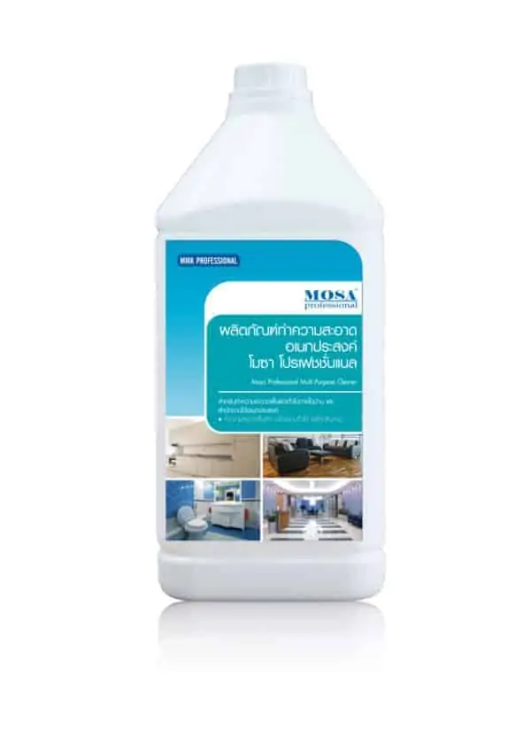 น้ำยาอเนกประสงค์ ของโมซา โปรเฟชชั่นแนล เหมาะสำหรับพื้นผิวทั่วไปภายในบ้านและสำหนักงาน ช่วยขจัดคราบและทำความสะอาดพื้นผิวทั่วไปได้อเนกประสงค์ เหมาะสำหรับพื้นผิวทุกชนิด รวมถึงอุปกรณ์สำนักงาน เฟอนิเจอร์ และสุขภัณฑ์ในห้องน้ำ กลิ่นแนวฟลอรัล